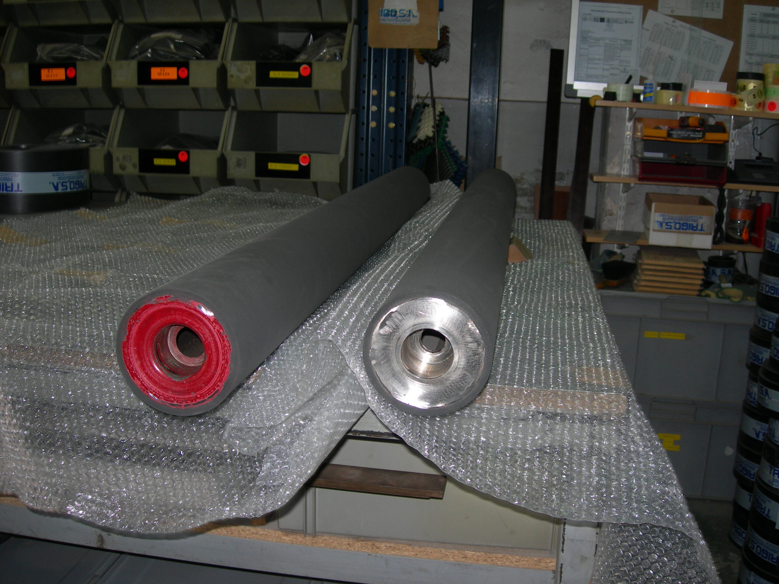 Con la entrega , por parte de nuestros clientes , de sus cilindros metálicos, podemos recubrirlos con distintos materiales de caucho.