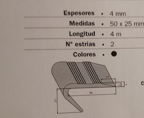 Cantonera de goma para peldaños de escaleras. Trigosa.