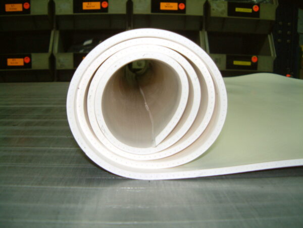 Plancha de goma alimentaria cumple normativa FDA. Color blanco.Servida en rollos.